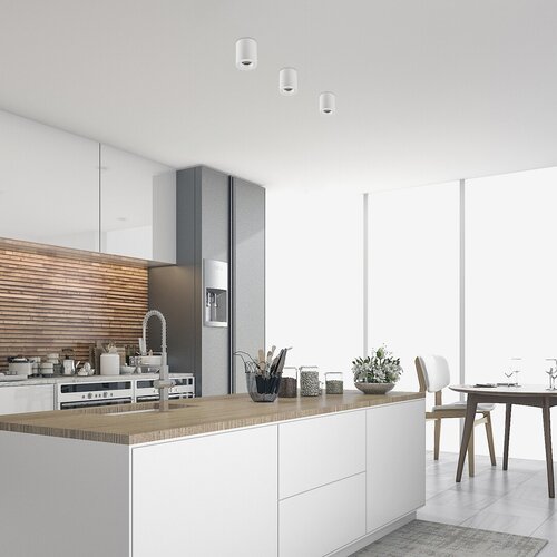 Elegante zylindrische Deckenleuchten, passend für moderne Innenräume. Sie bestehen aus Metall und Acryl. |