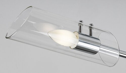 Interessante Badezimmerleuchten mit E14-Gewinde. Geeignet für eine Kerzenlampe. Die Lampen bestehen aus Metall und der Schirm besteht aus klarem Glas in Zylinderform. |