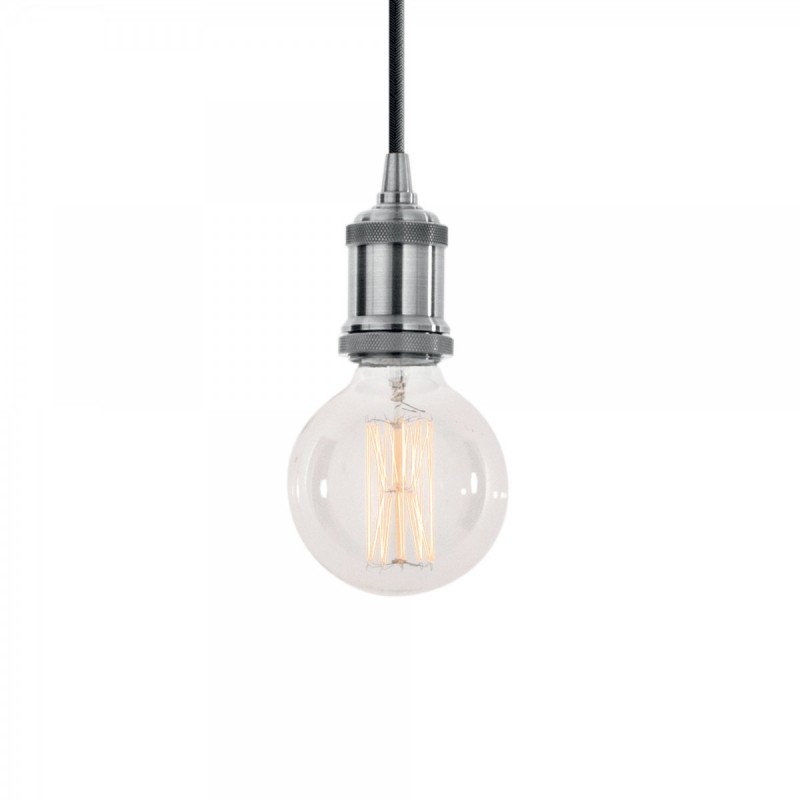 Moderne Pendelleuchte aus Metall mit Textilkabel. Für klassisches E27-Gewinde. |