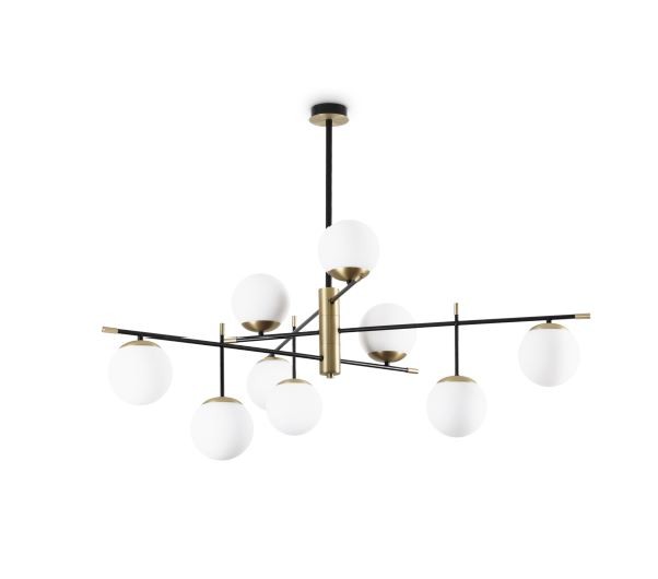 Elegante Pendelleuchten aus Metall und Glas. Der Sockel der Leuchte ist in mattem Schwarz gehalten, ergänzt durch ein mattes Messing, die Glaskugeln der Lampenschirme sind in Weiß gehalten. Sie eignen sich für Wohnzimmer, Küche, Schlafzimmer, Flur usw. |