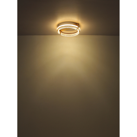 GL-67196-36H  Závěsné svítidlo, kov zlaté barvy, hliník zlaté barvy broušený, křišťály K5 čiré, akryl čirý, stmívatelné, několik úrovní pomocí nástěnného vypínače, paměť, nastavitelná výška, dál.ovládání, ø:400mm H:1200mm, LED 36W 230V 240-2000lm 2700-6000K -