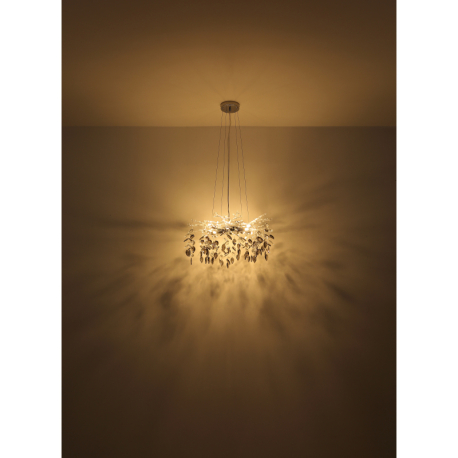 GL-64132-8 Závěsné svítidlo, kov zlatý matný, skleněné křišťály, jantarové, čiré, Ø:610 mm, V:1200 mm, bez žárovek 8mG9, Max. 8W 230V -