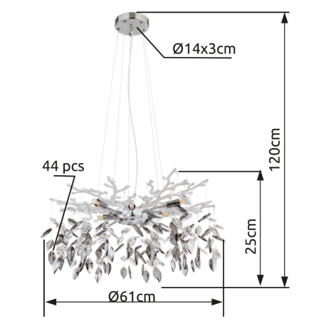 GL-64133-8 Závěsné svítidlo, kov chrom, skleněné křišťály, kouřové, čiré, Ø:610mm, V:1200mm, bez žárovek 8xG9, 8W 230V -