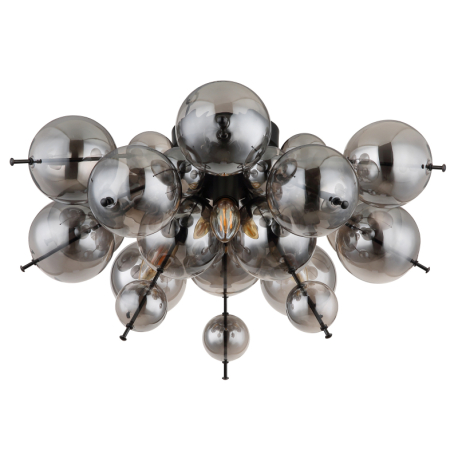 GL-15633DS Stropní svítidlo, kov černý, skleněné koule kouřové barvy, Ø:550mm, V:280mm, skleněné koule ø:15x6cm, 15x10cm, bez žárovek 3xE14, Max. 25W 230V -