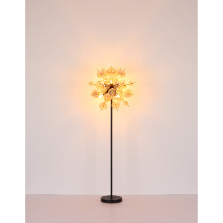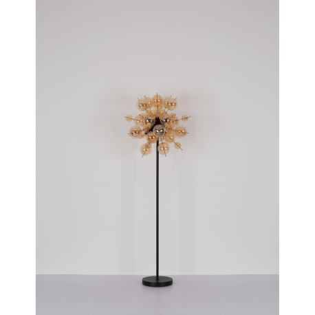 GL-15633HA Závěsné svítidlo, kov černý, kov zlaté barvy, skleněné koule jantarové barvy, kabel PVC černý, možnost zkrácení výšky, ø:550mm, V:1200mm, skleněné koule ø:24x6cm, 24x10cm, bez žárovek 6xE14 , Max. 25W 230V -