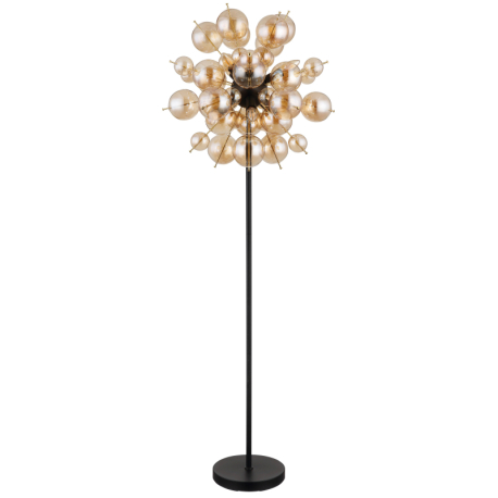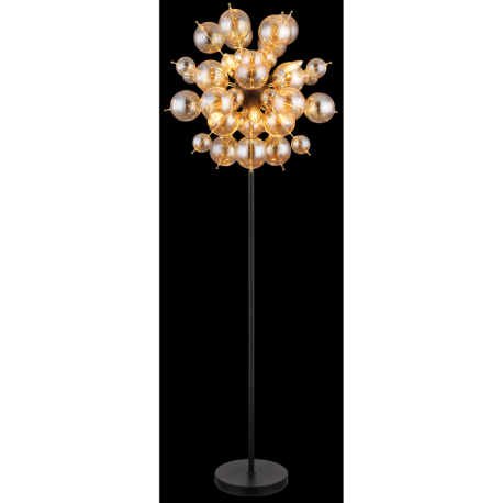 GL-15633SA Stojací svítidlo, kov černý, kov zlaté barvy, skleněné koule jantarové, kabel PVC černý, vypínač na kabelu, ø:550mm, V:1550mm, délka kabelu 1800mm, skleněné koule ø:24x6cm, 24x10cm , bez žárovek 6xE14, Max. 25W 230V -