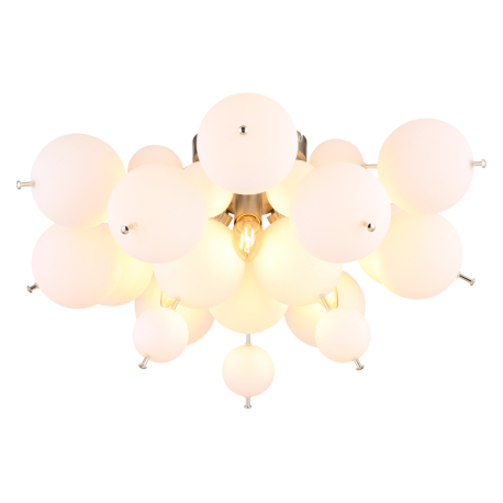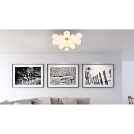 GL-15633DO Stropní svítidlo, kov nikl matný, skleněné koule bílé, kabel PVC černý, ø:550mm, V:280mm, skleněné koule ø:15x6cm, 1x 10cm, bez žárovek 3xE14, Max. 25W 230V -