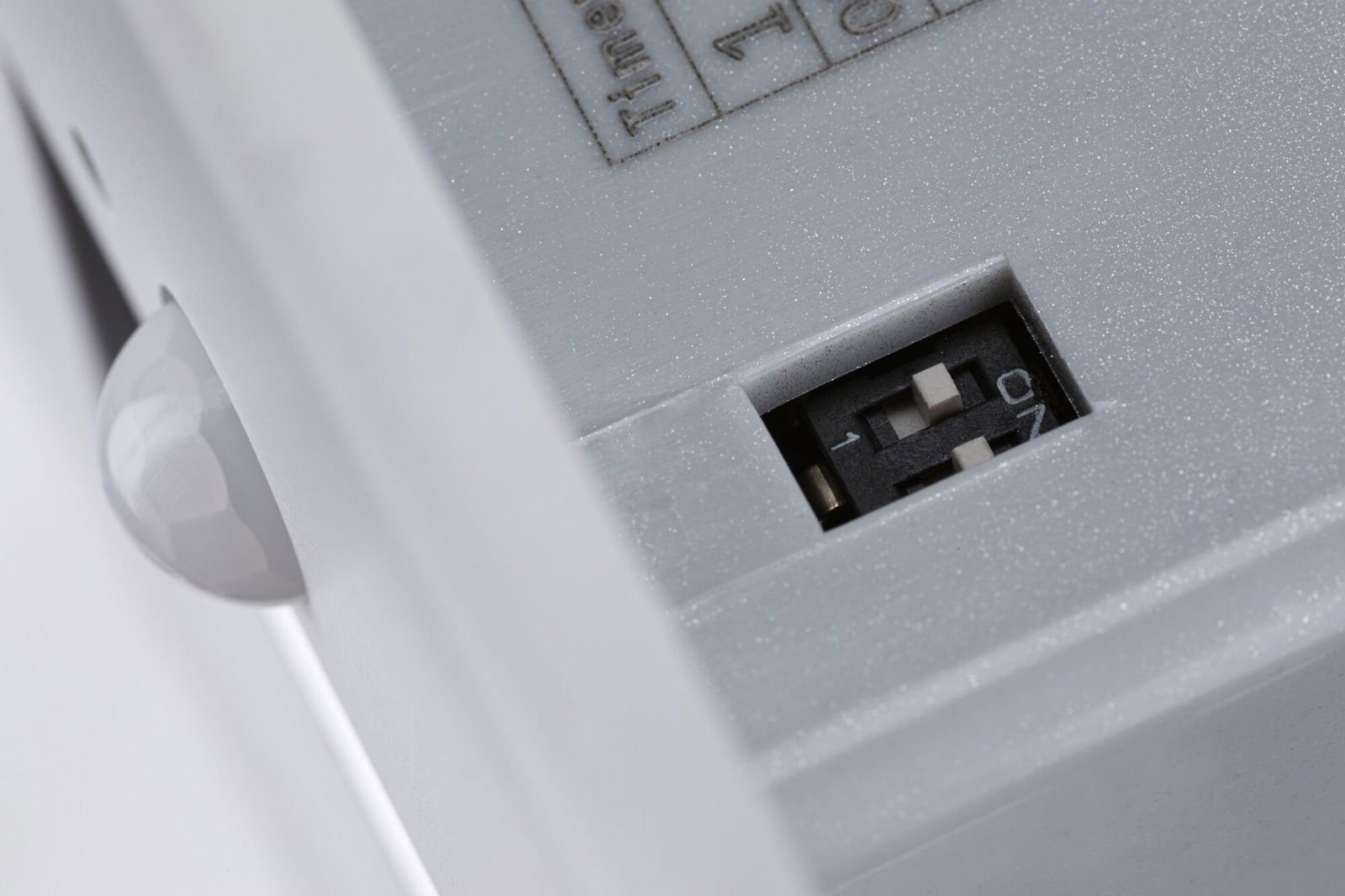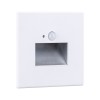 Moderne Treppenleuchte aus Kunststoff. Sie eignet sich für Flure oder Flure, um den Raum sanft zu beleuchten. Zur Verwendung in einer Standard-Elektrodose für Hohlwände mit einem Durchmesser von 68 mm. Die Lampe verfügt über einen Bewegungssensor mit 2m-Erkennung. Es strahlt in einem angenehm warmweißen Farbton, strahlt nach unten und blendet nicht. Time: 30sec., 1, 2 or 5 min. |