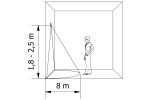 Der Sensor ist für die Wandmontage konzipiert und sollte in einer Höhe von 1,8 bis 2,5 Metern installiert werden, um optimale Erfassungsbedingungen zu gewährleisten. Er ist sowohl für den Innen- als auch für den Außenbereich geeignet, wie die Schutzart IP44 beweist.
