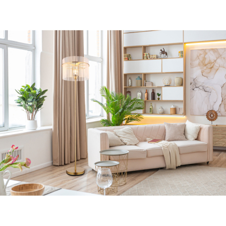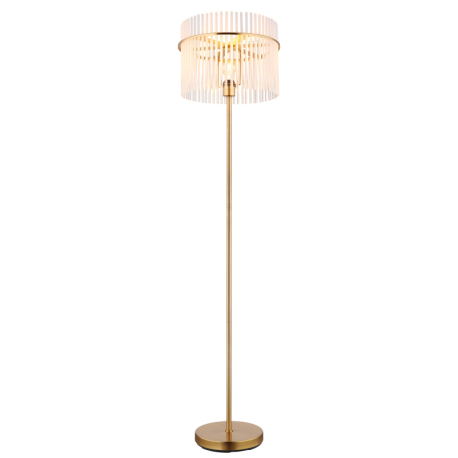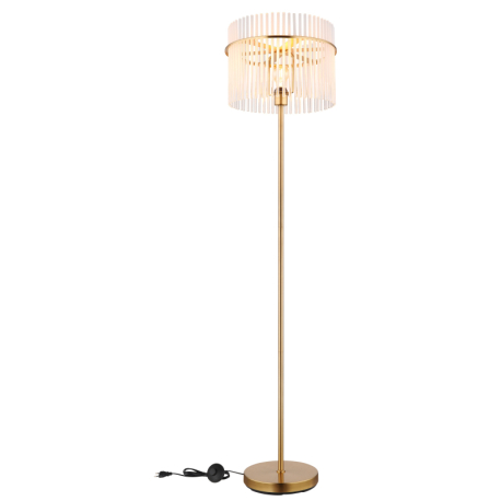 GL-15698SM Stojací svítidlo, kov zlaté barvy, skleněné tyče bílé, průhledné, kabel PVC černý, vypínač na kabelu, ø:380mm, V:1520mm, délka kabelu 1800mm, bez žárovky 1xE27, max. 60W 230V -