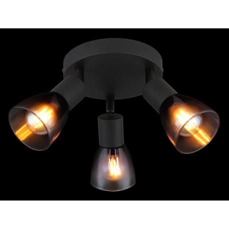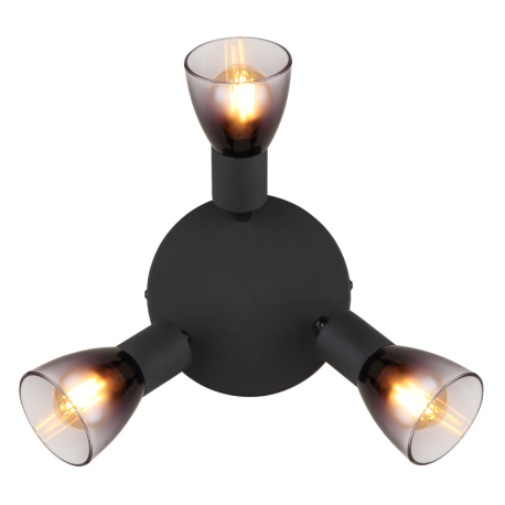 GL-54312-3 Stropní svítidlo, kov černý, sklo kouřové, průhledné, ø:220mm, V:165mm, bez žárovek 3xE14, max. 25W 230V -