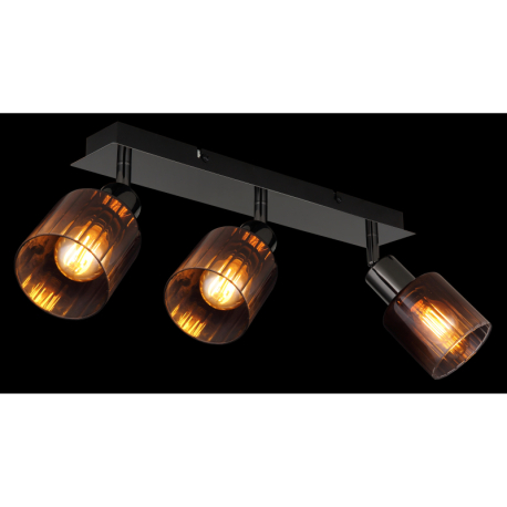 GL-54313-3  Stropní svítidlo, kov černý chrom, sklo měděné barvy a průhledné, Dx?xV:400x80x180mm, bez žárovek 3xE14, max. 40W 230V -