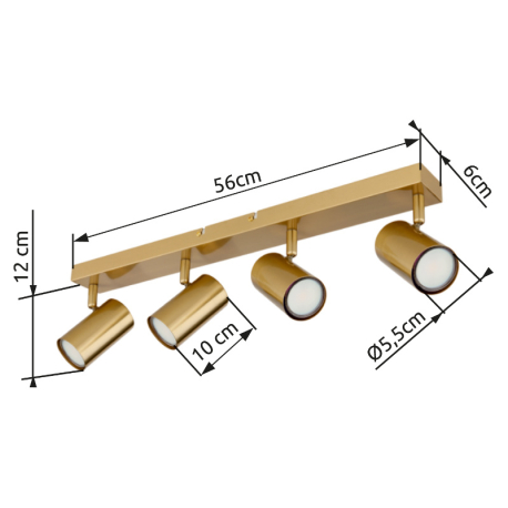GL-57911-4GO Stropní svítidlo, kov zlaté barvy broušený, Dx?xV:560x60x120mm, bez žárovek 4xGU10, max. 35W 230V -