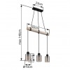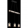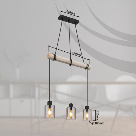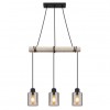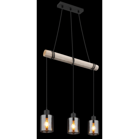 GL-15465-3H Závěsné svítidlo, kov černý, dřevo přírodní barva, sklo kouřová barva, kabel na omotání, Dx?xV:500x100x1400mm, bez žárovek 3xE27, max. 40W 230V -