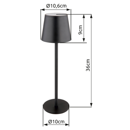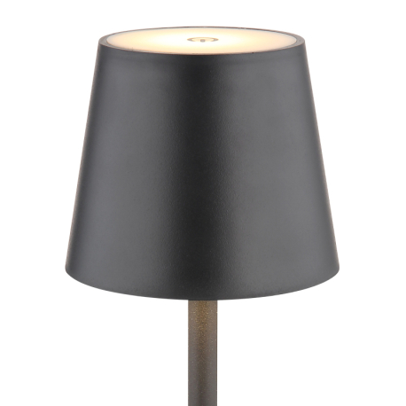 GL-58438G Stolní svítidlo, kov černý, plast černý a bílý, dotykové zapnutí/vypnutí, plynulá regulace dotykového stmívače, paměť, aku CR18650 1800mAh 3,7V, IP44, ø:106mm H:360mm, V:36cm nebo 24cm, LED 3W 230V, zdroj 300lm, výstup 130lm, 3000K -