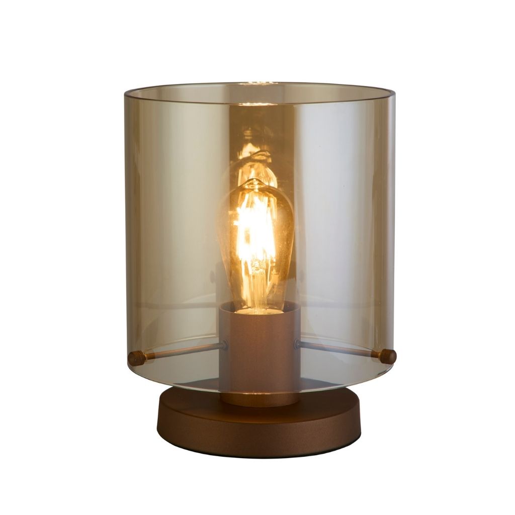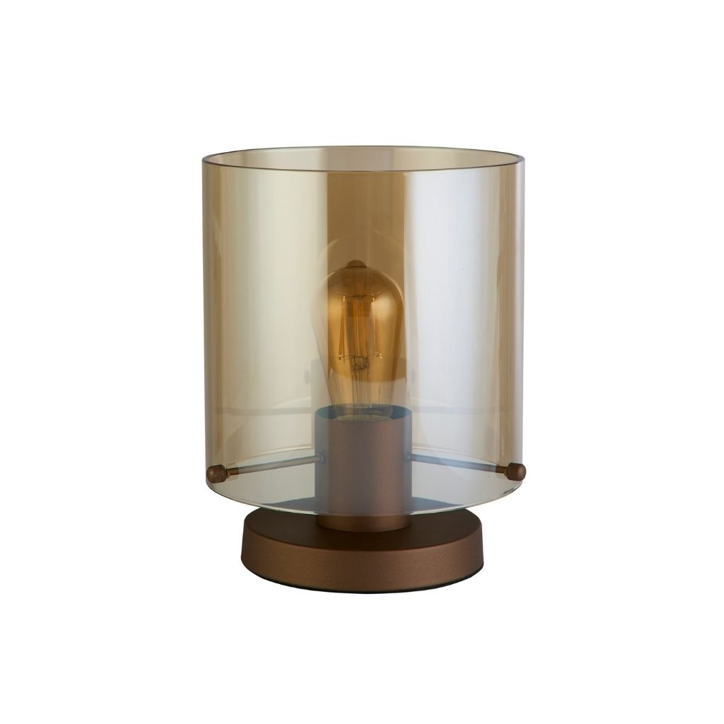 Searchlight Tischleuchte Farbe Kaffee und Bernstein, Oberflächenbehandlung Färbung, das verwendete Material ist Metall und Glas. Abmessungen in cm: Gesamthöhe: 25,5, Höhe: 25,5, Breite: 20, Länge: 20, Vorsprung: 0. Lichtquelle Fassung E27, Glühbirnen benötigt 1, Lichtquelle nicht enthalten, empfohlene Glühbirne Typ vom Hersteller ist eine klassische Glühbirne für max 60W. |