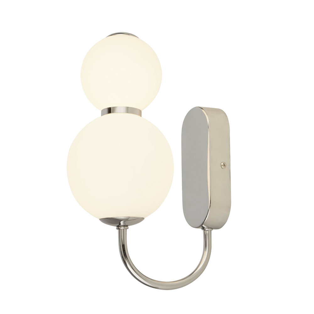Searchlight Wandleuchte Farbe Chrom und Weiß, Oberflächenveredelung Glanz, verwendetes Material ist Baustahl und Glas. Abmessungen in cm: Gesamthöhe: 28, Höhe: 28, Breite: 12, Länge: 0, Vorsprung: 18. |