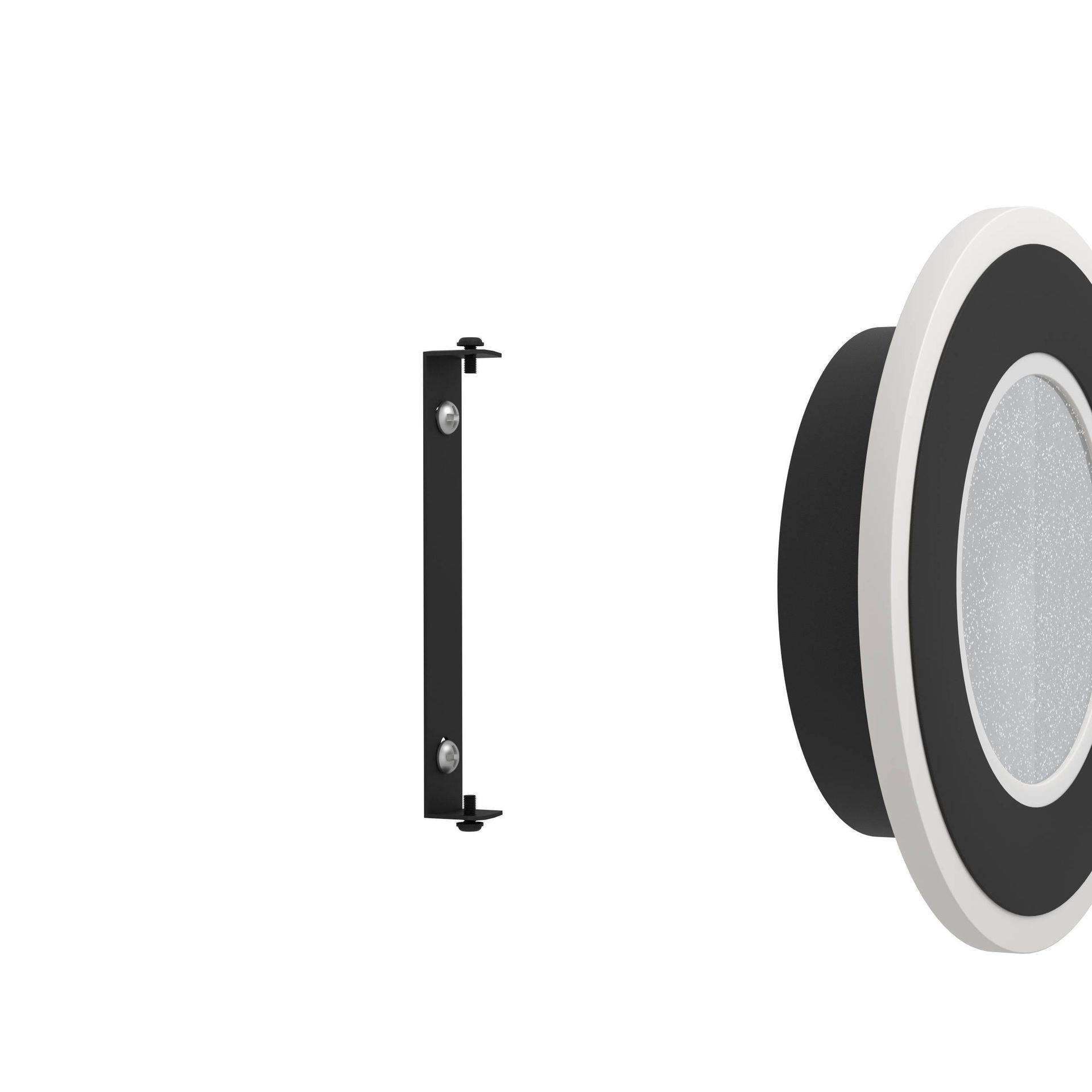 Elegante Wandleuchten aus Stahl und Kunststoff in Schwarz und Weiß mit Kunststoffpartikeln, die einen Kristalleffekt erzeugen. Sie leuchten in einem neutralen Weißton, eine Dimmbarkeit ist nicht gegeben.