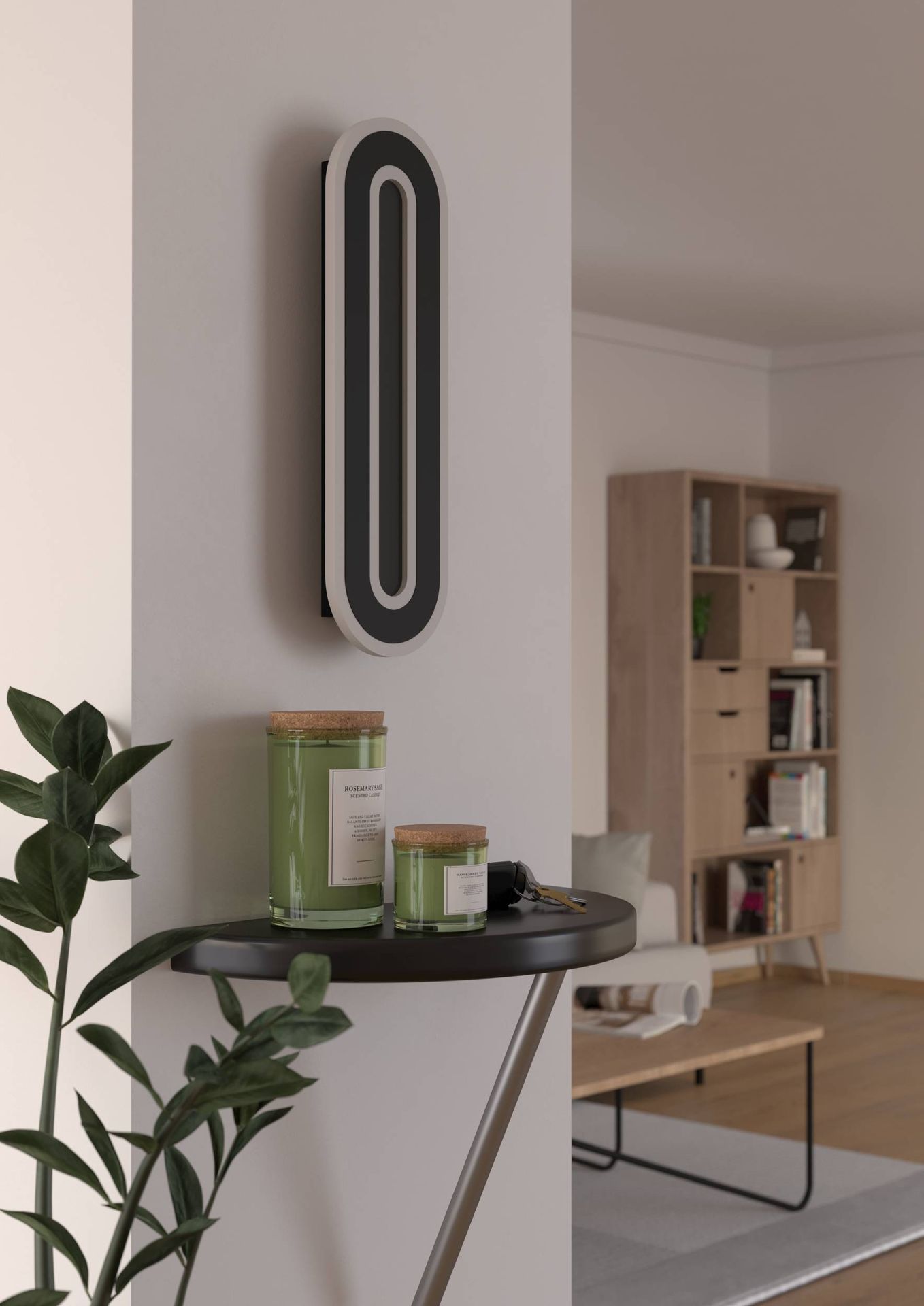Elegante Wandleuchten aus Stahl und Kunststoff in Schwarz und Weiß mit Kunststoffpartikeln, die einen Kristalleffekt erzeugen. Sie leuchten in einem neutralen Weißton, eine Dimmbarkeit ist nicht gegeben. |