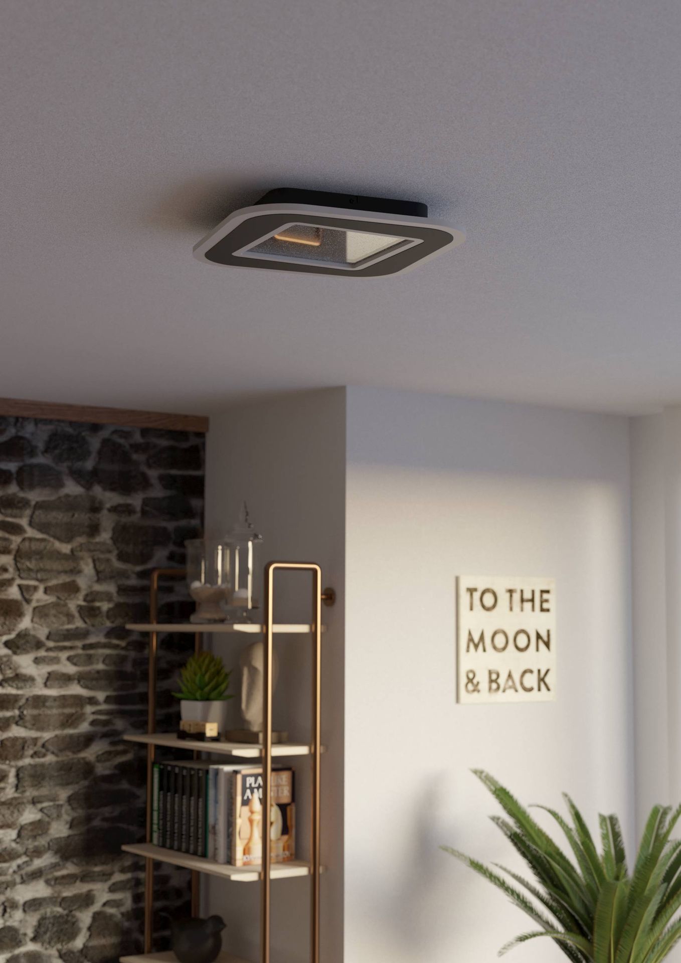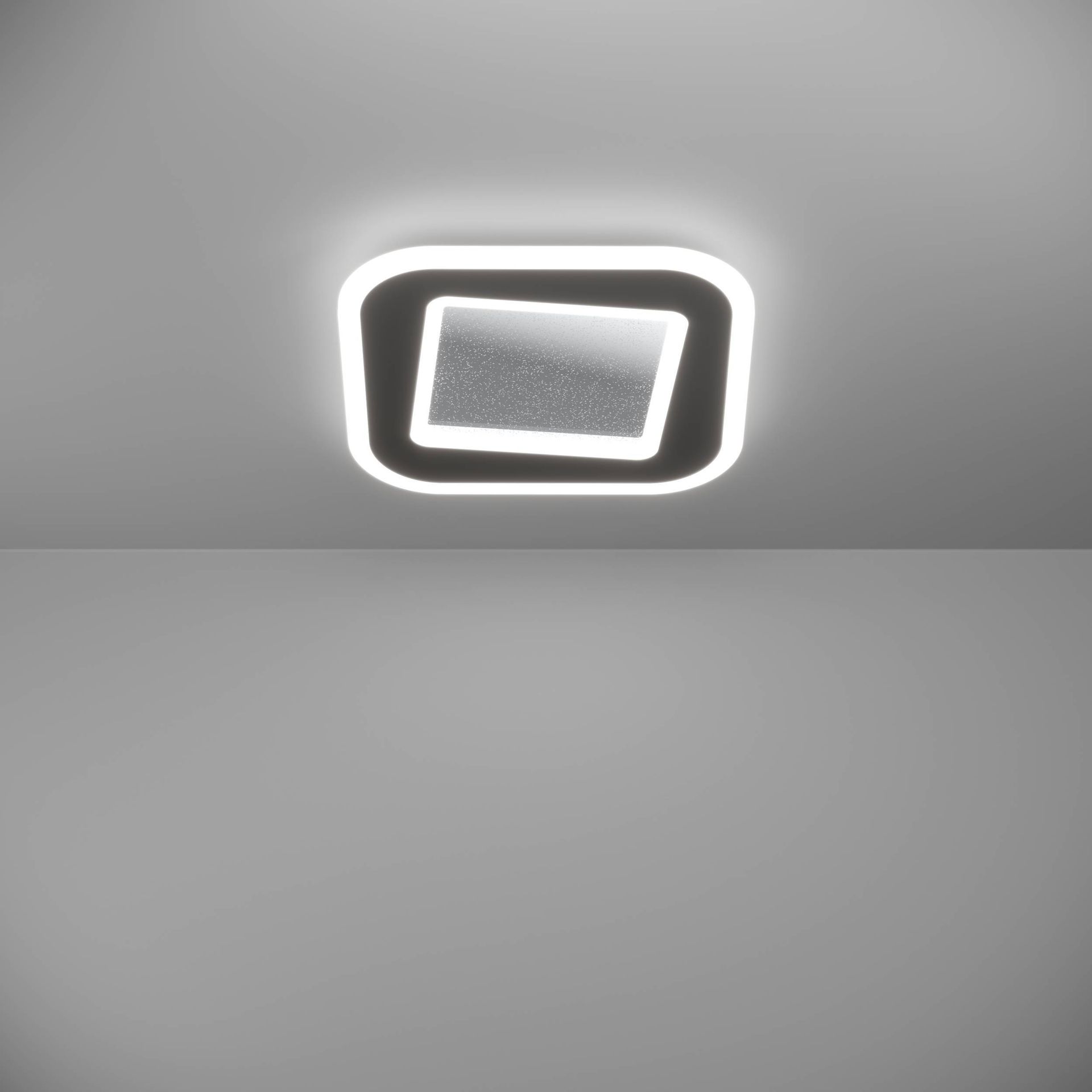 Elegante Wandleuchten aus Stahl und Kunststoff in Schwarz und Weiß mit Kunststoffpartikeln, die einen Kristalleffekt erzeugen. Sie werden mit einer Fernbedienung geliefert, mit der die Lichter gesteuert und die Farbtemperatur der Beleuchtung geändert werden kann.