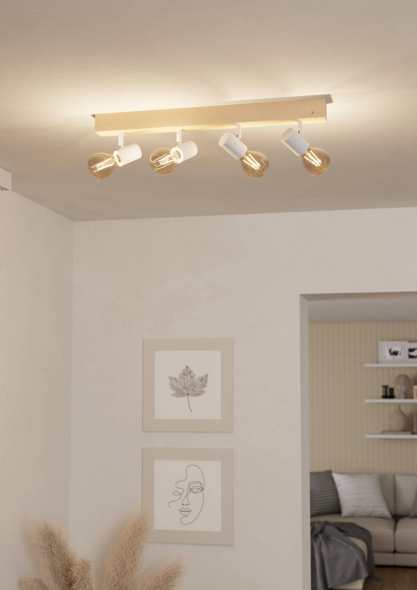Die klassischen Townshend-Strahler sind aus Stahl und Holz in Weiß und Braun gefertigt. Klassisches E27-Gewinde. Glühbirnen müssen separat erworben werden. |