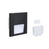 Die LED-Treppen-/Flurleuchte Tsaro ist aus Kunststoff in edlem Schwarz gefertigt. Die Lampen kommunizieren drahtlos miteinander. Sobald die Hauptsensorleuchte (Leader) eine Bewegung erkennt, sendet sie ein Signal an alle anderen Tsaro-Leuchten (Leader, Follower), die auf der gleichen Frequenz liegen.Der Sensor hat eine Reichweite von 3 Metern und einen Abstrahlwinkel von 180°. Es leuchtet in einem warmen Weiß. Die Leuchten können in einem maximalen Abstand von 10m vom Hauptleiter installiert werden. Möglichkeit, die Zeit auf 10 Sekunden oder 1, 3, 5 Minuten einzustellen. Die Leuchte wird in einem Standard-KU68-Schaltkasten installiert. Im Lieferumfang sind Kunststoffdiffusoren in zwei Ausführungen enthalten – glatt mattweiß und strukturiert.