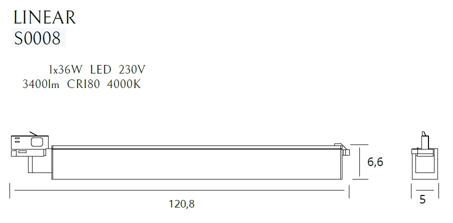 Příkon: 1 x 36W LED 230V, 3400 LM, CRI80 4000K