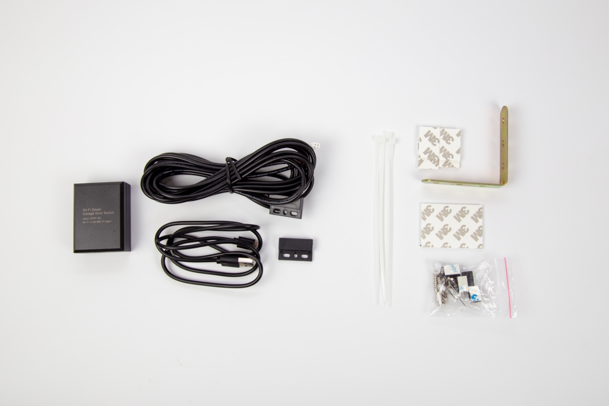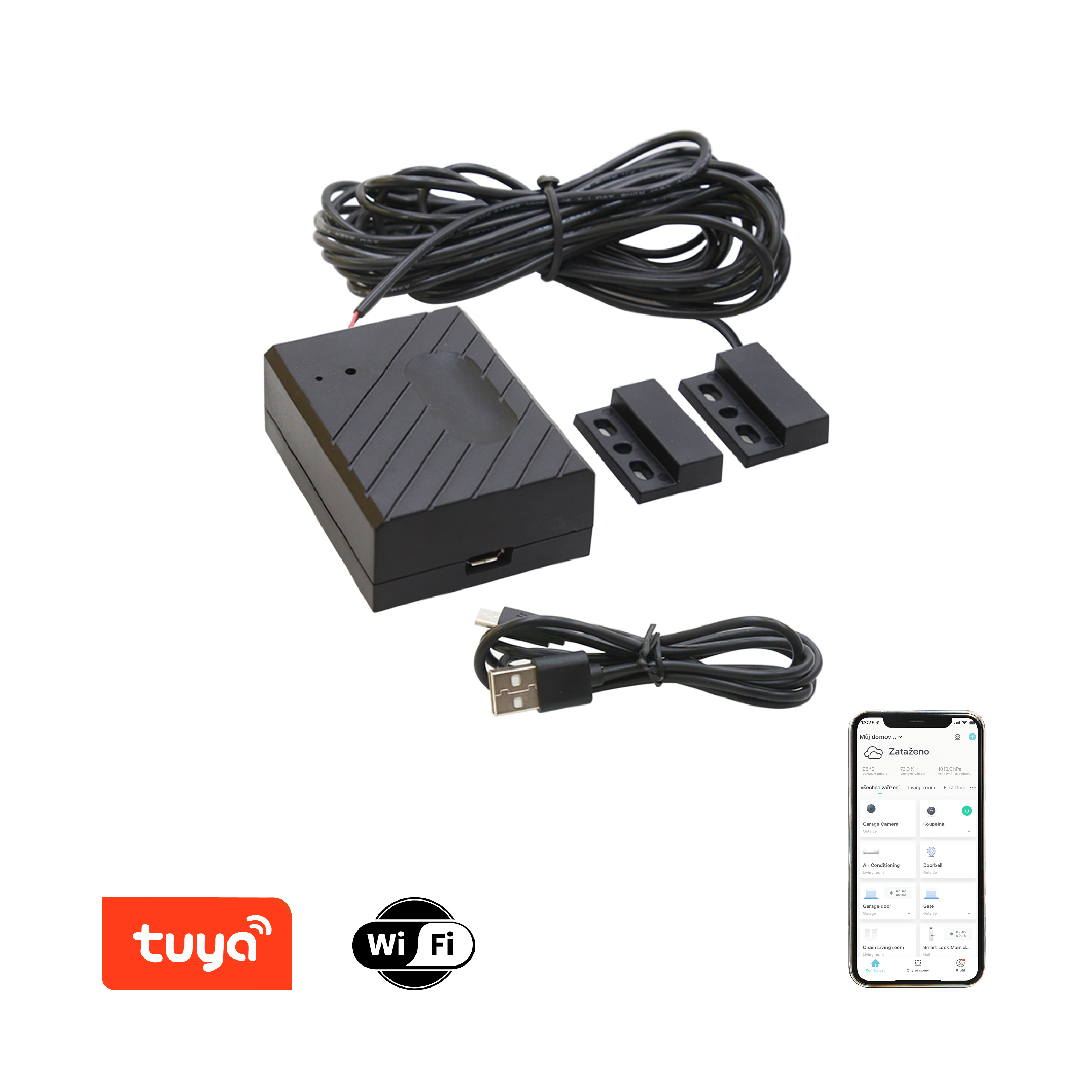 Obsah balení: Ovládání garážových vrat, USB kabel, kabel pro připojení k řídící jednotce vrat, uživatelský manuál