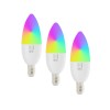 Protokol: Wi-Fi, Beacon Frekvence: 2400MHz~2483.5MHz Maximální RF výstupní výkon: WiFi: 20dBm Příkon: 6W Síťové pohotovostní napájení (Pnet): 0,4W Patice: E14 Materiál těla žárovky:plast Barva světla: CCT + RGB Barevná teplota: 2700K-6500K Světelný tok: 470lm (v kouli 360°) Úhel světelného paprsku: 200° Vstupní napětí: AC 230V Průměrná životnost: 25.000 hodin Index podání barev:>80Ra Rozměry: 3,7cm x 10,6mm Odpovídá klasické žárovce: 40W Počet spínacích cyklů: 100.000 Okamžité rozsvícení Energetická třída(EEI): F Účiník (Power factor): >0.5 Možnost stmívání: ANO Certifikáty: CE Technické parametry: