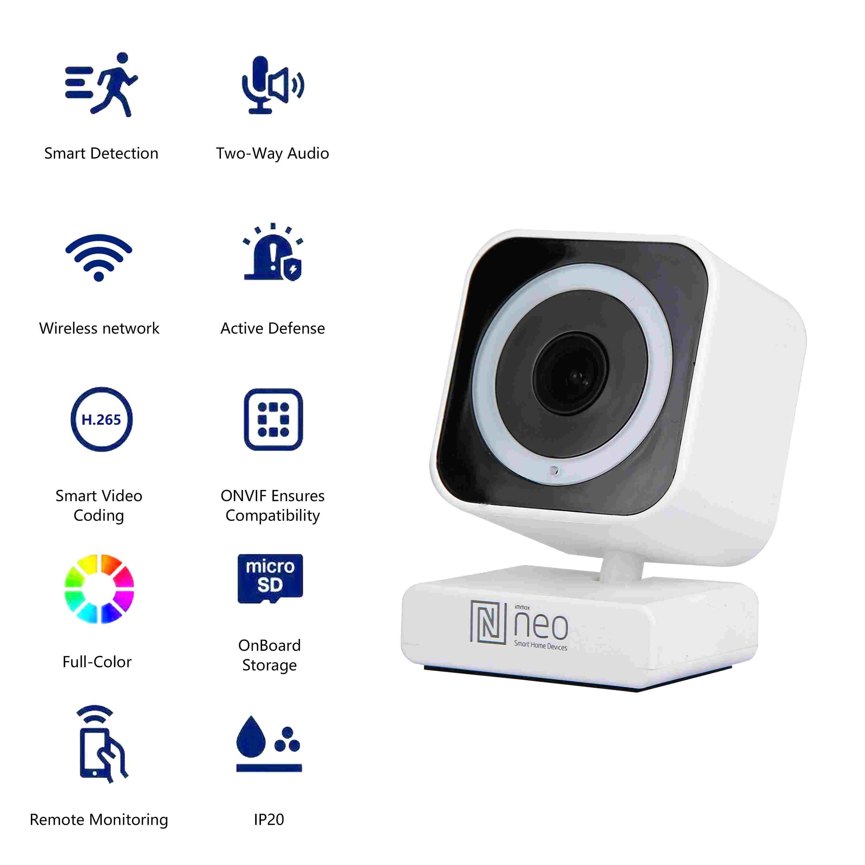 Immax NEO Lite Smart kamera, užitečný chytrý pomocník, který Vám pomocí WI-fi umožní okamžitý náhled na dění ve vašem domově. Kdykoliv bude potřeba, můžete pořídit záznam nebo fotografie z monitorované oblasti. V nastavení aplikace si můžete například zvolit, že pokud kamera detekuje pohyb, ohlásí se alarm na Vašem chytrém telefonu či tabletu, tak budete ihned informováni o nečekaných návštevnících. Součástí kamery je kvalitní reproduktor a mikrofon, který umožní oboustrannou komunikaci s rodinnými příslušníky nebo s domácími mazlíčky. Detekce pohybu, denní i noční vidění, skvělá kvalita obrazu. Technická specifikace: Kamera: Denní a noční automatické přepínání filtru IR -CUT Obsah balení: Smart kamera, napájecí kabel, napájecí adaptér, uživatelský manuál