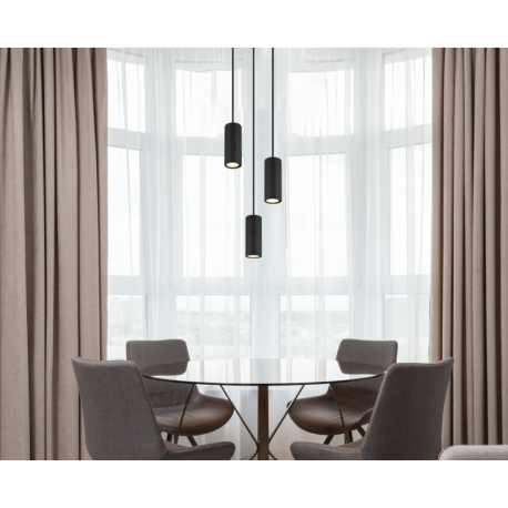 | Stilvolle Pendelleuchten aus Metall und Aluminium in Mattschwarz. Der Leuchtenkörper besteht aus Metall und der Schirm aus Aluminium. Mit GU10-Fassung. Diese modernen Leuchten lassen sich mit einem smarten LED-Leuchtmittel ergänzen und per Smartphone die Farbe oder Temperatur des Lichts verändern, dimmen und so eine angenehme Atmosphäre im Innenraum schaffen. | |