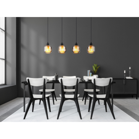 Die eleganten Xia-Lampen bestehen aus Metall in Mattschwarz mit Glasschirmen, die Rauch und Weiß kombinieren. Die Lampen werden ohne Leuchtmittel geliefert. E27-Gewinde. |