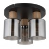 Moderne Lampen aus Metall in Mattschwarz und mit Glasschirmen in Rauchfarbe, ergänzt durch ein hölzernes, braunes Element. Perfekt für Wohnzimmer, Küchen, Esszimmer und Schlafzimmer. Die Lampen werden ohne Leuchtmittel geliefert. Mit E27-Fassung. |