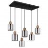 Moderne Lampen aus Metall in Mattschwarz und mit Glasschirmen in Rauchfarbe, ergänzt durch ein hölzernes, braunes Element. Perfekt für Wohnzimmer, Küchen, Esszimmer und Schlafzimmer. Die Lampen werden ohne Leuchtmittel geliefert. Mit E27-Fassung. |