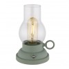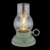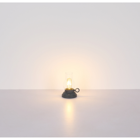 Dekorative Lampe aus Kunststoff mit Glasschirm. Die Lampe imitiert eine altmodische Petroleumlampe. Sie verfügt über einen Touch-Schalter. Ein Ladekabel ist im Lieferumfang enthalten. Die Lampe leuchtet auch während des Ladevorgangs. Sie leuchtet mit warmweißem Licht, was einen sehr angenehmen Eindruck macht.