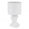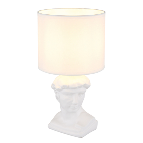 Schlichte, elegante Tischleuchten, geeignet für Wohnzimmer, Schlafzimmer, Flure etc. Der Sockel hat die Form einer Caesar-Büste und besteht aus Keramik, der Schirm ist rund und aus Textil. Mit E14-Fassung. Die Leuchten werden ohne Leuchtmittel geliefert. Kabellänge 130 cm. |