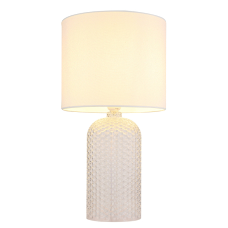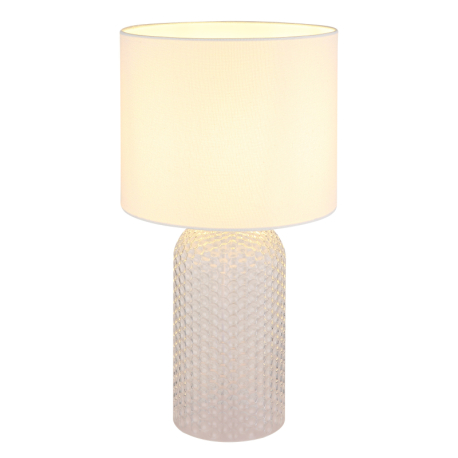 | Stilvolle Tischleuchte aus Glas mit Textilschirm. Der Glasfuß der Leuchte ist verziert, was ihr ein interessantes Aussehen verleiht. Sie eignet sich perfekt für Wohnzimmer, Schlafzimmer und Flure, um eine angenehme Atmosphäre zu schaffen. Mit E27-Fassung. Leuchtmittel sind nicht im Lieferumfang enthalten. Kabellänge 130 cm. | |