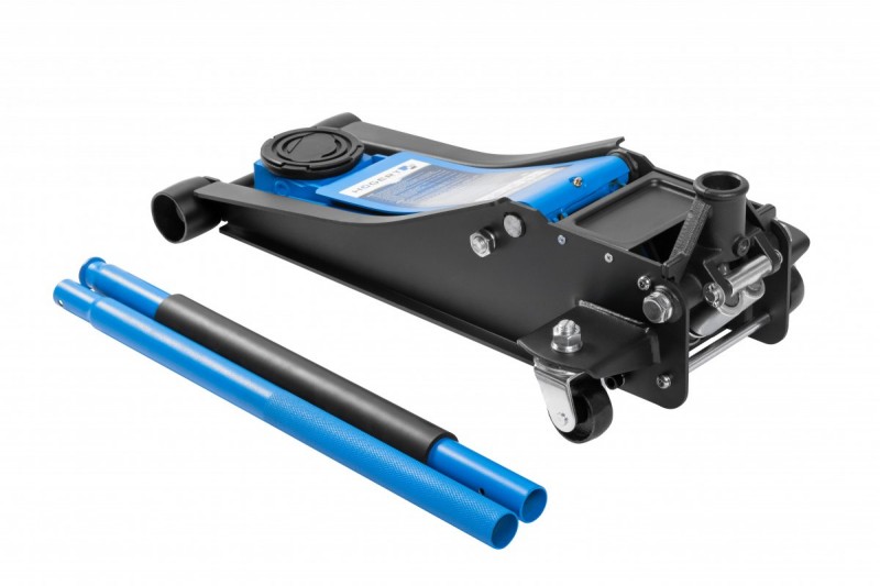 Hydraulický zvedák typu „žába“ s velkým rozsahem pracovní výšky. Umožňuje zvedat břemena do hmotnosti 2,5 T do výšky od 72 do 505 mm. Automobilový zvedák navržený pro vozy se sníženým podvozkem. Díky své robustní konstrukci a odolnému dvoupístovému hydraulickému válci zvedá vozidlo bez námahy a rychle, aniž by hrozilo jeho náhodné spadnutí. Odolné přední přepravní kolečka a zadní otočná kolečka zajišťují pohodlný přístup k vozidlu a stabilní umístění kdekoli. Vestavěný ventil proti přetížení chrání před překročením maximální nosnosti a prodlužuje životnost zařízení. Silnostěnná ocel a pevné svary zaručují dlouhou životnost i při intenzivním používání.