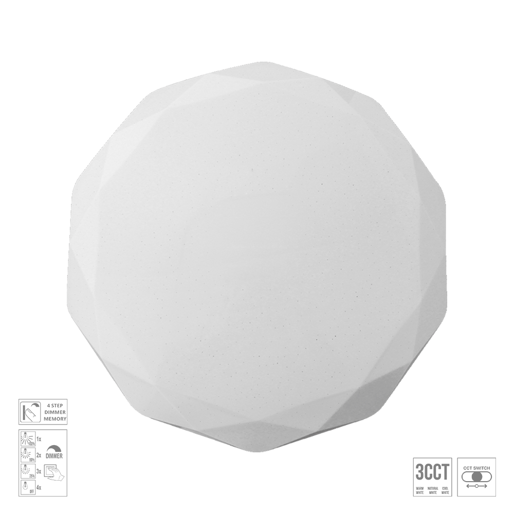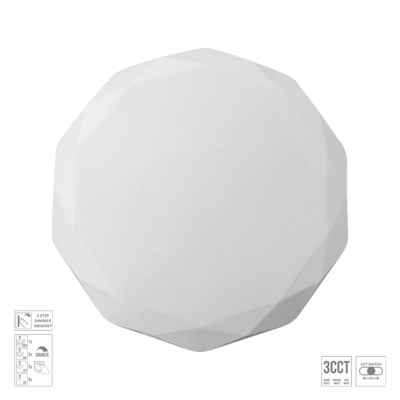 Die Iridio-Deckenleuchten bestehen aus weißem Metall und Acryl. Dank des sanft schimmernden Lichteffekts eignen sie sich perfekt für Kinderzimmer und moderne Einrichtungen. Die Leuchte hat eine Lebensdauer von 20.000 Stunden. Die Farbtemperatur ist von 3000 K bis 6500 K einstellbar. Die zuletzt gewählte Lichteinstellung kann gespeichert werden.