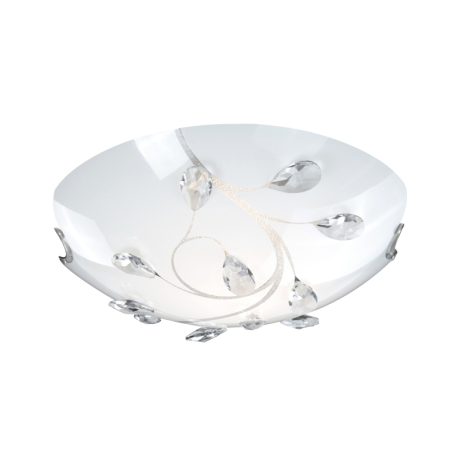 GL-40404-2  Stropní svítidlo, nikl matný, sklo bílé, K5 křišťály průhledné, Ø30cm, V:10cm, bez žárovek 2xE27, max. ILLU 40W 230V. -
