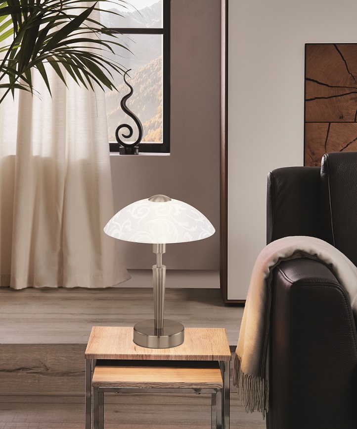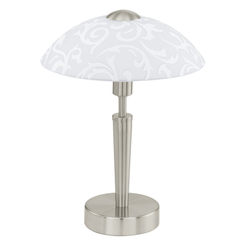 Die Solo Tischleuchten sind aus Stahl und satiniertem Glas gefertigt. Sie verfügen über einen Berührungsdimmer, mit dem man die Lampe mit dem ersten Druck einschalten, mit dem nächsten Druck einschalten und mit dem nächsten Druck ausschalten kann. |