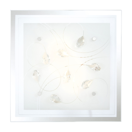 GL-40408-2  Stropní svítidlo, chrom, sklo bílé, K5 křišťály průhledné, Dx?xV: 34x34x9cm, bez žárovek 2xE27, max. ILLU 40W 230V. -