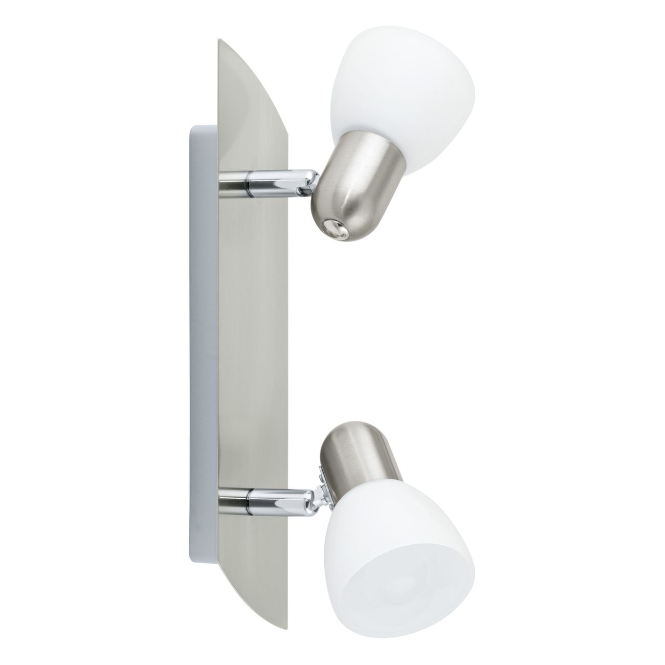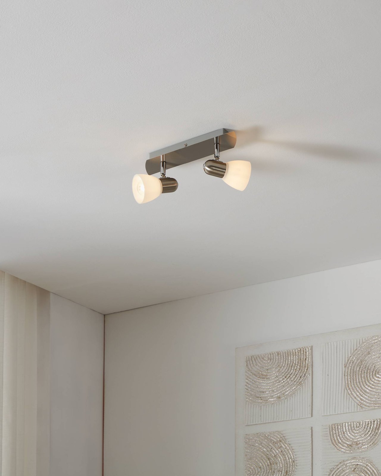 Klassische Strahler aus Stahl in Nickel matt und Glas in Weiß. Sie eignen sich für alle Wohnräume wie Wohnzimmer, Schlafzimmer, Arbeitszimmer, aber auch den Flur oder die Diele.