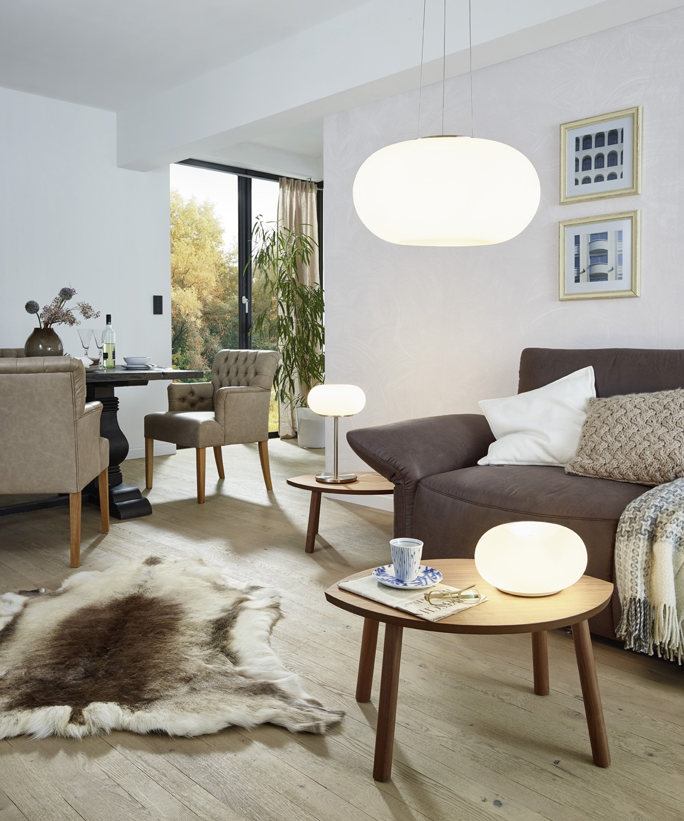 Das Leuchtenset Optica hat ein sehr elegantes und zeitloses Design. Es eignet sich für moderne Innenräume, wo es den Gesamteindruck wunderbar ergänzt. Die Leuchten sind aus mattiertem weißem Opalglas und der Sockel ist aus mattiertem Nickel.