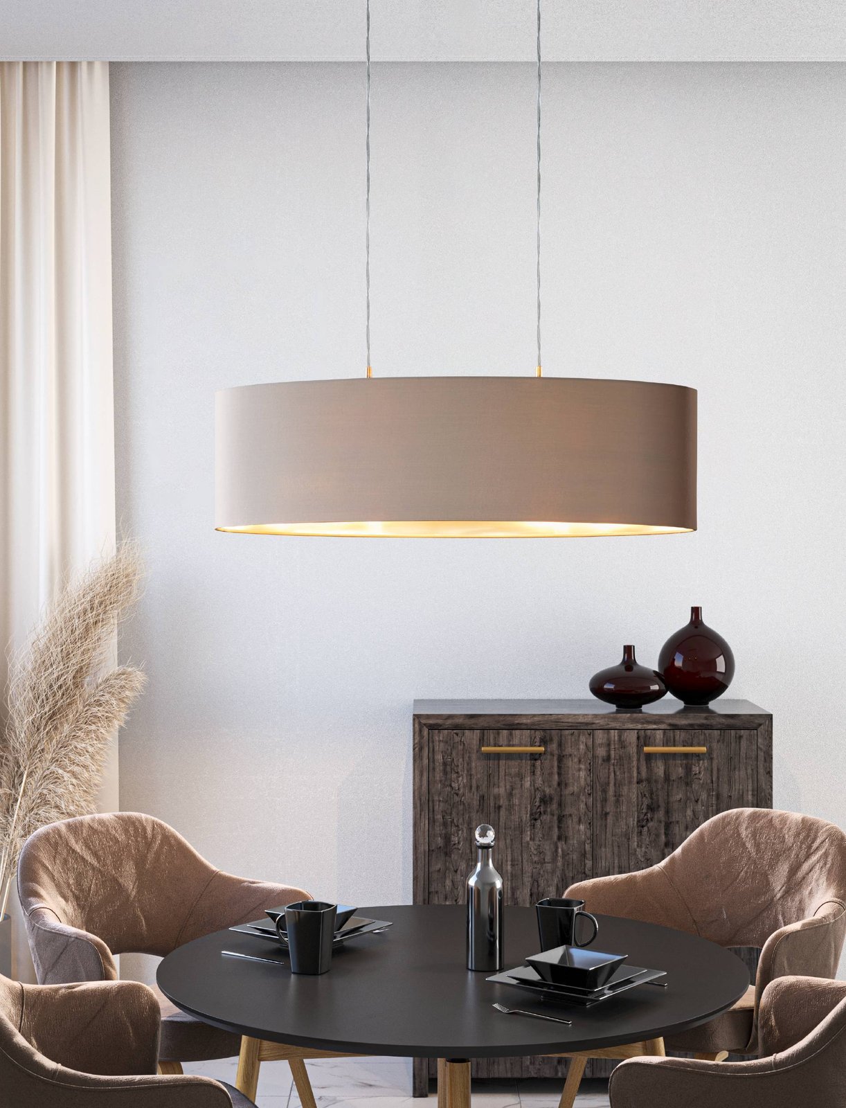 Moderne Lampen aus Stahl in der Farbe Nickel matt und Lampenschirme aus Textil in den Farben Cappuccino und Gold. Sie eignen sich für alle Wohnräume in Ihrem Interieur. Es besteht die Möglichkeit, sie mit einer smarten LED-Glühbirne auszustatten und sie per Smartphone-App zu dimmen oder die Temperatur und Farbe der Beleuchtung zu ändern. |