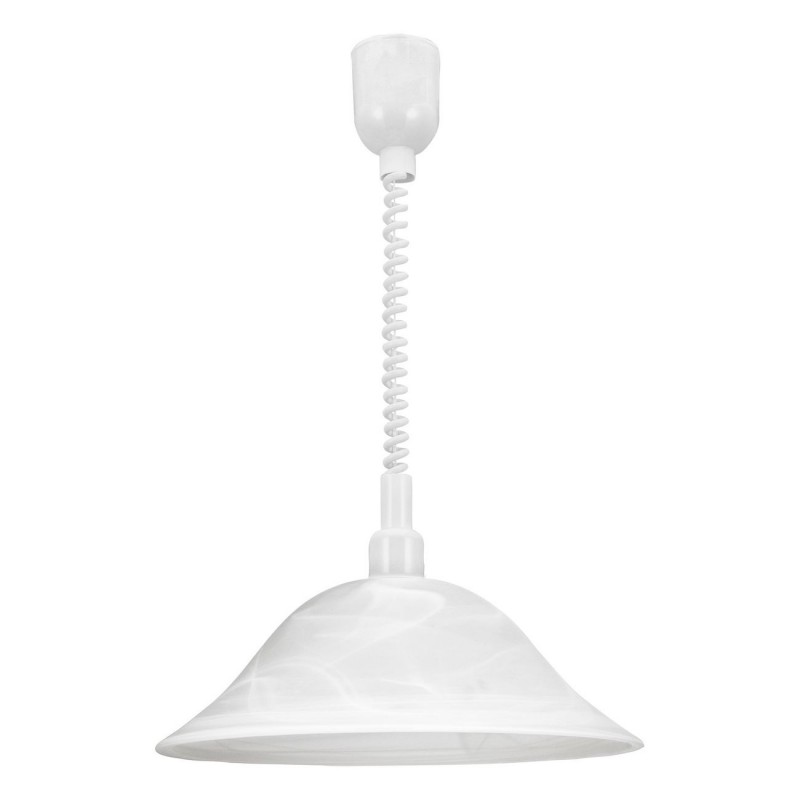 Dies sind typische Küchenlampen im klassischen Stil. Der Sockel ist aus Kunststoff und der Schirm besteht aus Alabasterglas. Dank des Spiralkabels verfügen sie über eine flexibel einstellbare Aufhängehöhe. |