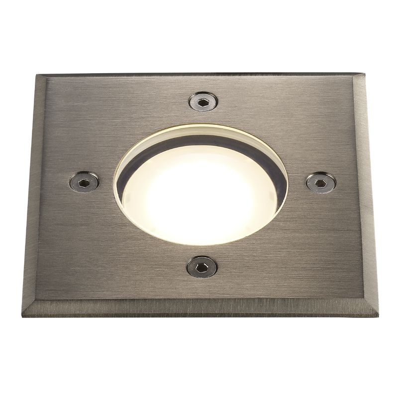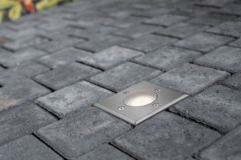| Jednoduché venkovní zemní vestavěné svítidlo čtvercového tvaru vhodné k zasazení do venkovní dlažby | |