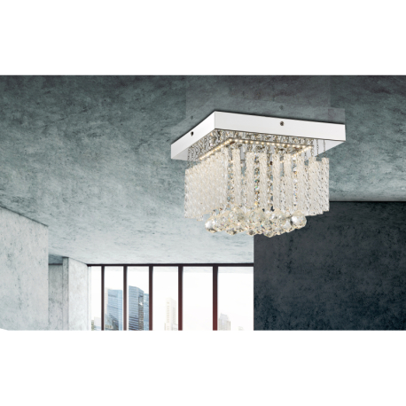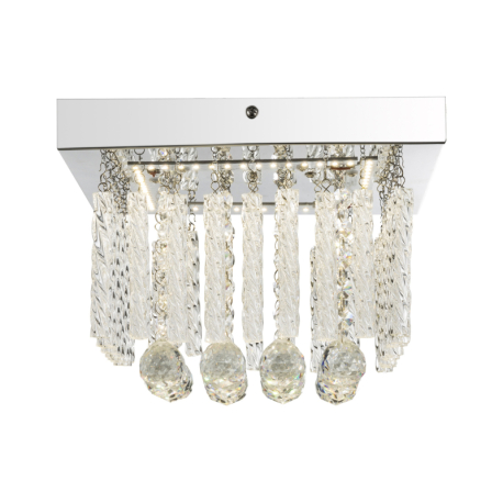 GL-68396-12 Stropní svítidlo, chrom, skleněné tyčinky, křišťály, Dx?xV: 25x25x15cm, včetně 1xLED 40V 12W, 1200lm, 4000K. -