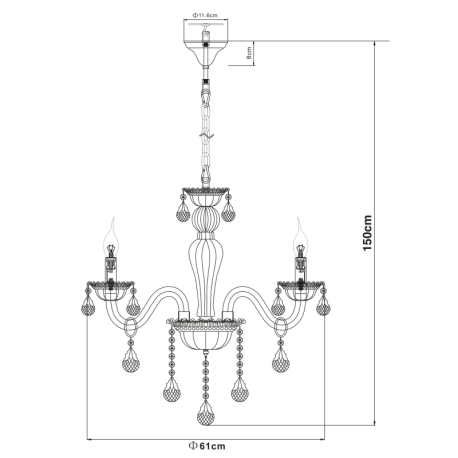 GL-64118-6 Závěsné svítidlo, bílé, sklo, K5 křišťály Ø61cm, V:150cm, bez žárovek 6xE14, max. 40W 230V -