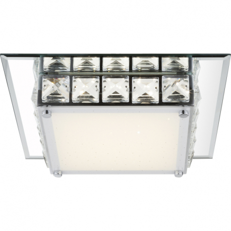 GL-49355 Stropní svítidlo, chrom, sklo bílé, K5 křišťály čiré, zrcadlový okraj, Dx?xV:25x25x7cm, včetně 1xLED 12W 230V, 720lm, 4000K. -